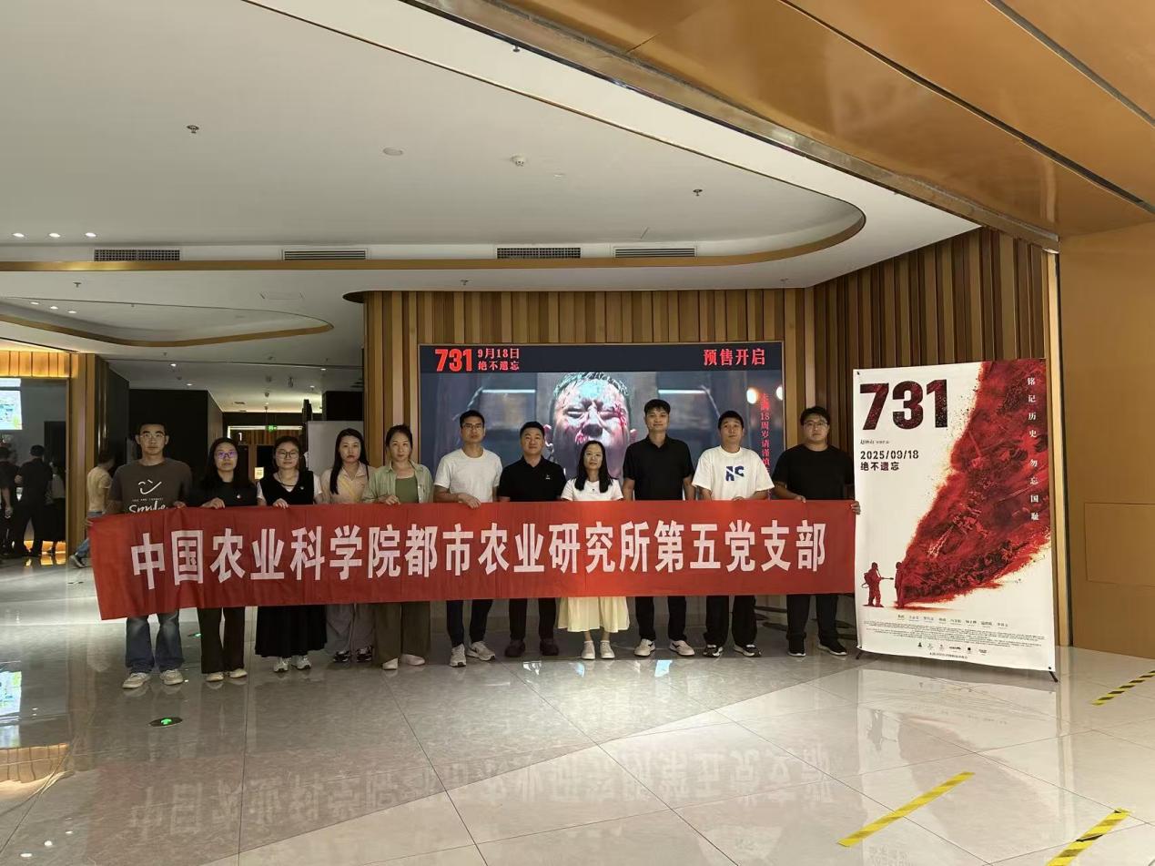 近日,中国农业科学院都市农业研究所第五党支部在天府新区大悦城博纳影院组织开展了“铭记历史·砥砺前行·捍卫和平”观看电影《731》主题党日活动,旨在进一步增强党员的历史使命感与爱国主义情怀并纪念中国人民抗日战争暨世界反法西斯战争胜利80周年、“九一八”事变94周年。支部全体党员、入党积极分子以及部分青年群众共20余人参加。