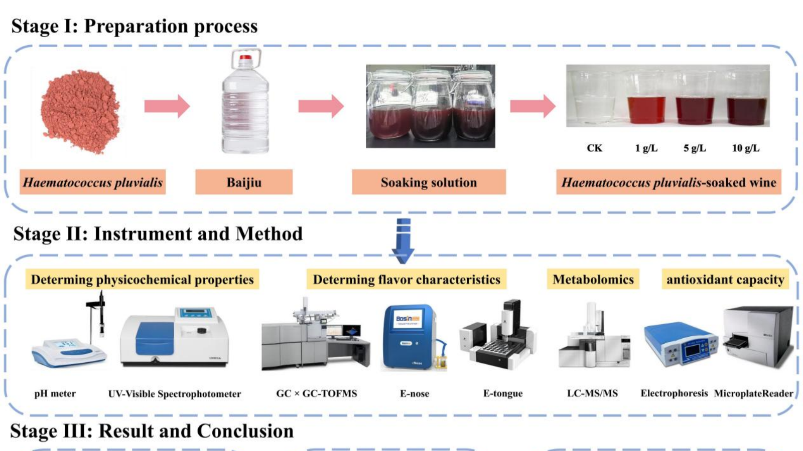 雨生红球藻对白酒理化性质、风味特征和抗氧化能力的影响近日,中国农业科学院都市农业研究所功能植物培育与应用创新团队系统揭示了雨生红球藻作为一种功能性食品原料,对白酒的理化特性、风味及抗氧化能力的显著提升作用,为开发兼具健康属性与独特风味的创新型功能酒产品...